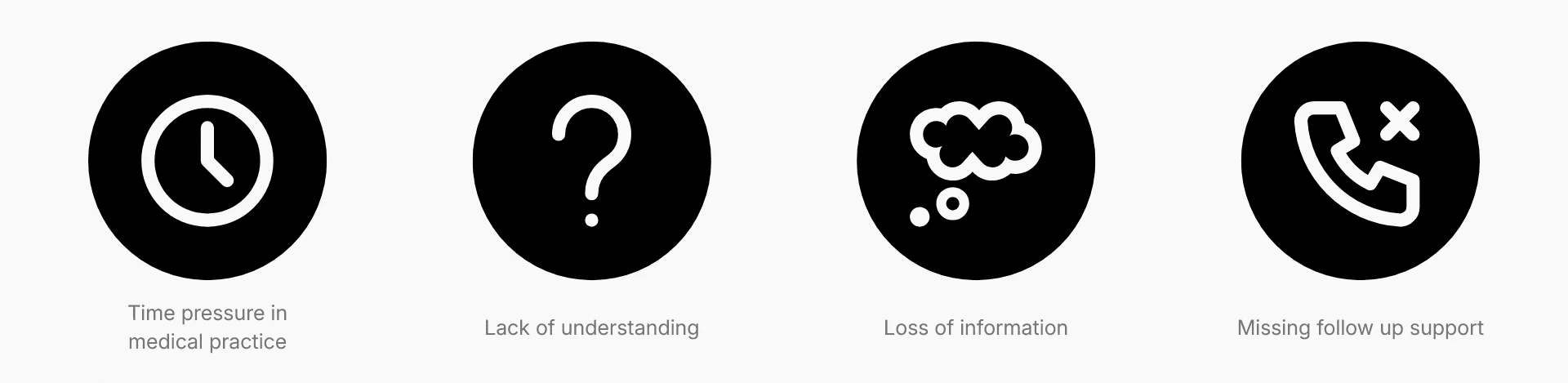 The app supports the final consultation and enables clear and visual communication between doctors and patients. It allows simple input of diagnoses tests and treatments using medical standards and offers visual tools such as interactive 3D models and medical illustrations. All relevant information is handed over to patients through a secure QR code without cloud storage.